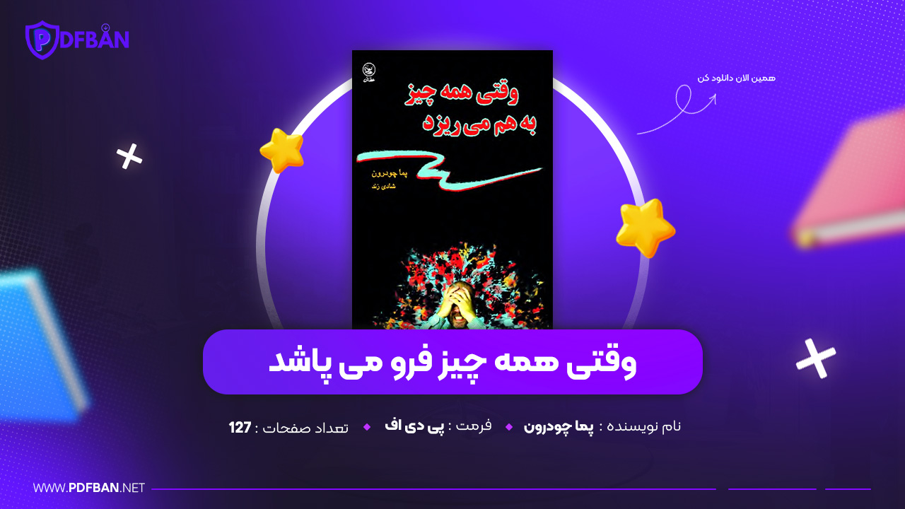 دانلود PDF کتاب وقتی همه چیز فرو می پاشد پما چودرون (پی دی اف)در این پست دانلود PDF کتاب وقتی همه چیز فرو می پاشد پما چودرون برای شما توسط سایت پی دی اف بان معرفی شده است. کتاب “وقتی همه چیز فرو می‌پاشد” نوشته پما چودرون یکی از آثار تاثیرگذار و عمیق در زمینه خودشناسی و رشد فردی است که به بررسی چالش‌ها و بحران‌های زندگی می‌پردازد. این کتاب به خوانندگان کمک می‌کند تا در مواجهه با سختی‌ها و تغییرات ناگهانی، به درک عمیق‌تری از خود و دنیای پیرامونشان برسند. چودرون با نگاهی دقیق و تحلیلی به مفاهیمی چون آسیب‌پذیری، از دست دادن و تغییر می‌پردازد و نشان می‌دهد که چگونه می‌توان از این تجربیات به رشد و تحول دست یافت.