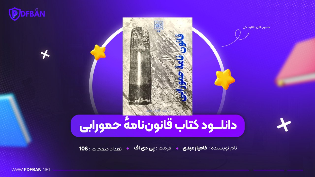 در این پست دانلود PDF کتاب قانوننامهٔ حمورابی کامیار عبدی برای شما توسط سایت پی دی اف بان معرفی و ارائه شده است.کتاب قانوننامهٔ حمورابی ترجمه و تألیف کامیار عبدی یکی از آثار مهم در حوزه تاریخ حقوق و تمدن باستان است که برای نخستین بار ترجمهای کامل از این قانوننامه را به زبان فارسی ارائه میدهد. این اثر نهتنها برای علاقهمندان به تاریخ و باستانشناسی، بلکه برای دانشجویان حقوق، علوم اجتماعی و فلسفه نیز بسیار ارزشمند است.