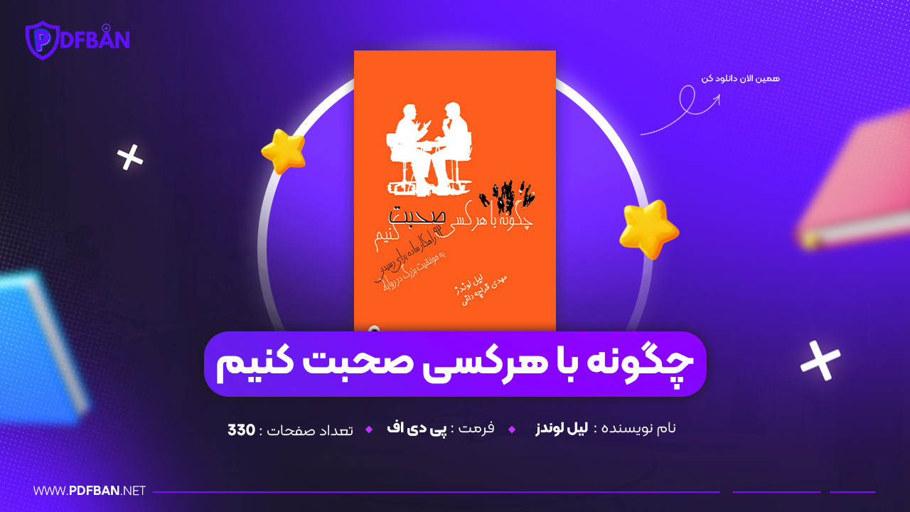 در این پست دانلود PDF کتاب چگونه با هرکسی صحبت کنیم لیل لوندز برای شما توسط سایت پی دی اف بان معرفی شده است.کتاب «چگونه با هرکسی صحبت کنیم» نوشتهی لیل لوندز، اثریست سرشار از جزئیات ظریف، تکنیکهای ملموس و بینشهای روانشناختی که بهجای ارائهی نظریههای خشک، مستقیماً به قلب رفتارهای انسانی میزند؛ رفتاری که در لحظهی اول برخورد، در نوع نگاه، در نحوهی ایستادن، در انتخاب واژهها و حتی در سکوتهای کوتاه میان جملات شکل میگیرد.
