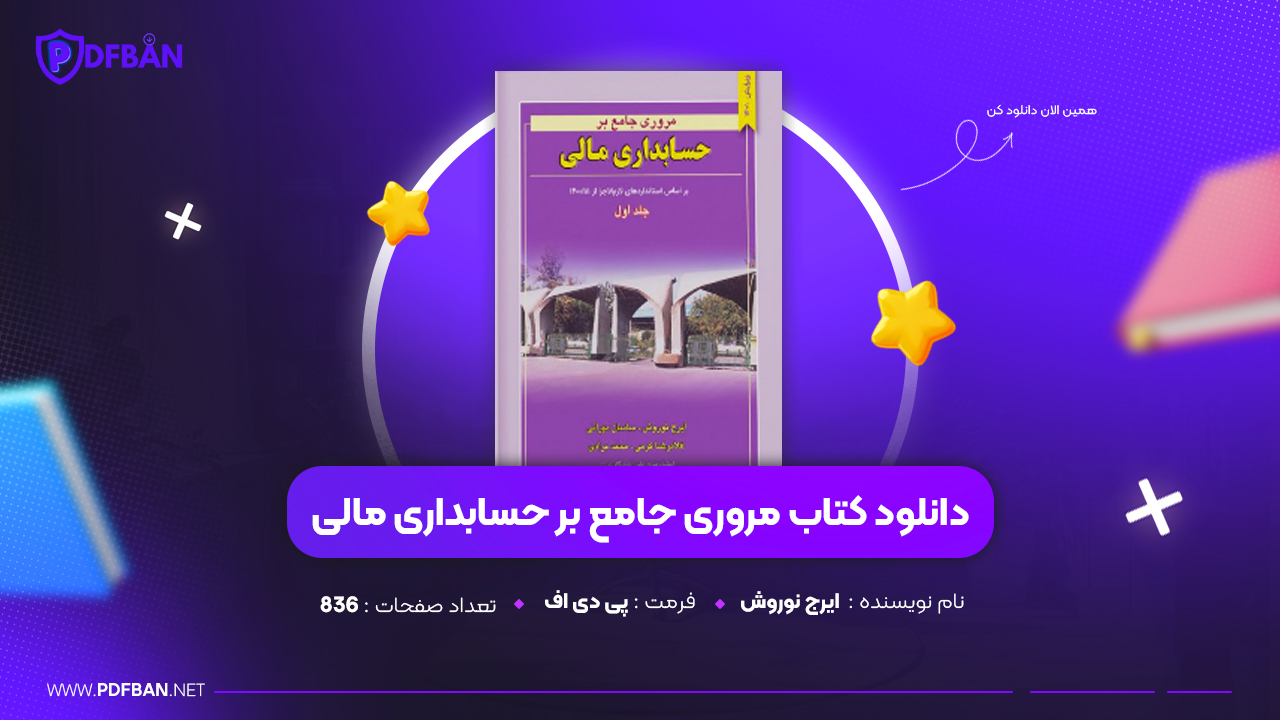 در این پست دانلود PDF کتاب مروری جامع بر حسابداری مالی ایرج نوروش برای شما توسط سایت پی دی اف بان معرفی و ارائه شده است. این کتاب با هدف ارائه مفاهیم پایه و پیشرفته حسابداری مالی برای دانشجویان، علاقه‌مندان و متخصصان حوزه مالی تدوین شده است. مطالب کتاب به گونه‌ای طراحی شده‌اند که مخاطب بتواند با اصول حسابداری مالی، ثبت و تحلیل تراکنش‌های مالی، صورت‌های مالی و گزارشگری مالی آشنا شود. مطالعه این کتاب باعث می‌شود دانشجویان و حرفه‌ای‌های حوزه مالی ضمن یادگیری مفاهیم نظری، مهارت‌های عملی لازم برای تحلیل و مدیریت اطلاعات مالی را کسب کنند و با تمرین‌ها و مثال‌های متعدد، توانایی تصمیم‌گیری مالی خود را تقویت نمایند.