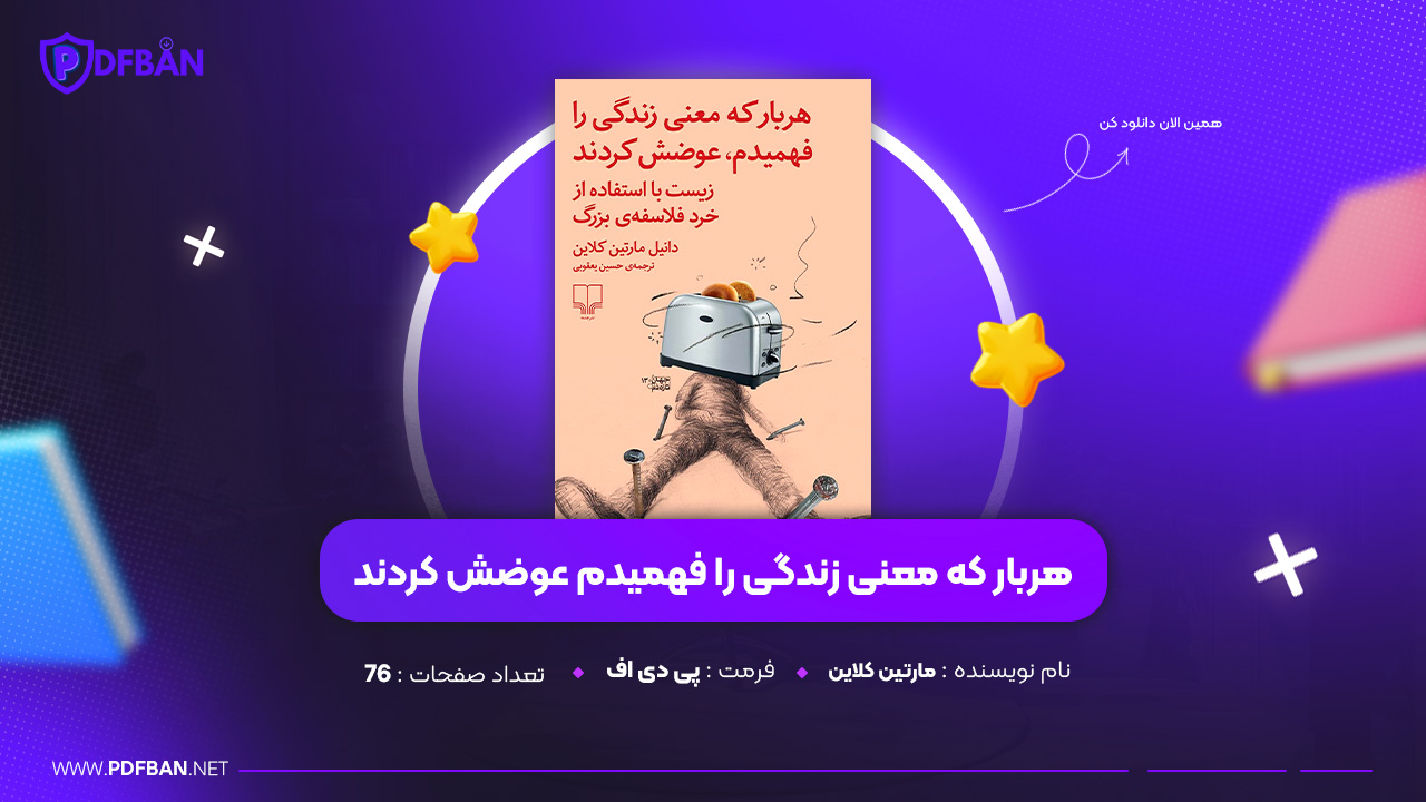 در این پست دانلود PDF کتاب هربار که معنی زندگی را فهمیدم عوضش کردند مارتین کلاین برای شما توسط سایت پی دی اف بان معرفی و ارائه شده است. کتاب “هر بار که معنی زندگی را فهمیدم، عوضش کردند” نوشته مارتین کلاین، اثری عمیق و تأملبرانگیز است که به بررسی مفهوم زندگی و چالشهای آن میپردازد. این کتاب با نگاهی فلسفی و روانشناختی به موضوعاتی چون جستجوی معنا، تغییرات مداوم در زندگی و تأثیرات آن بر روح و روان انسان میپردازد.