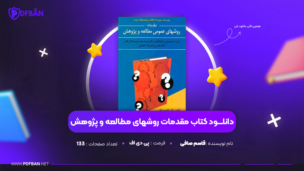 در این پست دانلود PDF کتاب مقدمات روشهای مطالعه و پژوهش دکتر قاسم صافی (پی دی اف) برای شما توسط سایت پی دی اف بان معرفی و ارائه شده است.کتاب مقدمات روشهای مطالعه و پژوهش اثر دکتر قاسم صافی یکی از منابع پرکاربرد برای دانشجویان علوم انسانی، معلمان، نویسندگان و پژوهشگران تازهکار است. این کتاب با زبانی روان، گامبهگام به آموزش اصول مطالعه، تحقیق، جمعآوری اطلاعات و نگارش علمی میپردازد.