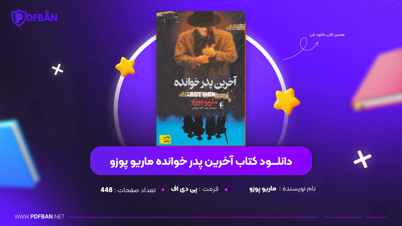 در این پست دانلود PDF کتاب پدر خوانده ماریو پوزو برای شما توسط سایت پی دی اف بان معرفی و ارائه شده است. کتاب «پدرخوانده» اثر ماریو پوزو داستان خانوادهٔ مافیایی کورلئونه را روایت میکند که در دنیای جنایت سازمانیافته آمریکا قدرت زیادی دارند. دون ویتو کورلئونه، رئیس خانواده، با هوش و نفوذ خود امپراتوریای را اداره میکند که بر پایهٔ وفاداری، احترام و ترس بنا شده است. داستان با تمرکز بر روابط خانوادگی، رقابتهای مافیایی و تصمیمهای اخلاقی پیچیده، تصویری جذاب از دنیای تاریک مافیا ارائه میدهد. شخصیتها عمیق و باورپذیر هستند و فضای داستان پرتنش و پرکشش است. این رمان نهتنها یک داستان جنایی است، بلکه دربارهٔ قدرت، اخلاق، و انتخابهای انسانی نیز حرف میزند. «پدرخوانده»یکی از تأثیرگذارترین آثار ادبیات معاصر محسوب میشود.