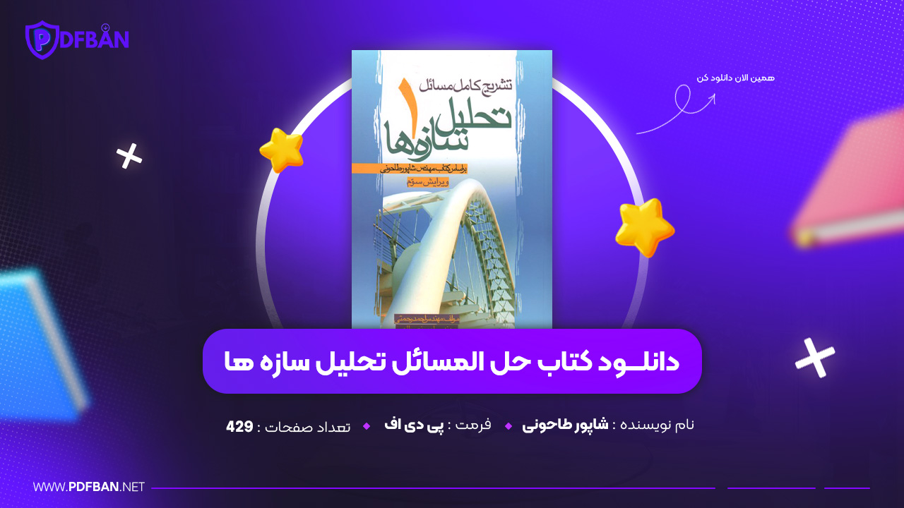 در این پست دانلود PDF کتاب حل المسائل تحلیل سازه ها شاپور طاحونی برای شما توسط سایت پی دی اف بان معرفی و ارائه شده است. کتاب حل المسائل تحلیل سازهها شاپور طاحونی یکی از منابع مکمل و کاربردی در حوزه مهندسی عمران و سازه است که به منظور تسهیل درک مفاهیم پیچیده کتاب اصلی «تحلیل سازهها» تألیف شده است. این اثر با ارائه پاسخهای تشریحی به تمرینها و مسائل مطرحشده در کتاب درسی، به دانشجویان و مهندسان کمک میکند تا با روشهای تحلیلی، اصول مکانیک سازهها و رفتار اجزای سازهای در شرایط مختلف آشنا شوند. سبک نگارش کتاب دقیق، آموزشی و گامبهگام است و در کنار بیان فرمولها و روشها، به درک مفهومی مطالب نیز توجه دارد.