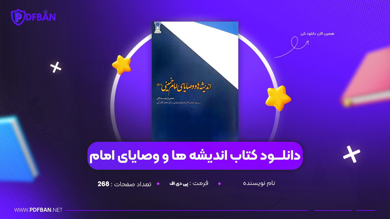 در این پست دانلود PDF کتاب اندیشه ها و وصایای امام (پی دی اف) برای شما توسط سایت پی دی اف بان معرفی و ارائه شده است.کتاب اندیشهها و وصایای امام مجموعهای از دیدگاهها، رهنمودها و توصیههای اخلاقی، سیاسی و اجتماعی امام خمینی (ره) است که در قالب سخنرانیها، پیامها و وصیتنامه سیاسی–الهی ایشان گردآوری شده است. این اثر بیشتر در مراکز آموزشی و فرهنگی بهویژه در مدارس و دانشگاهها مورد استفاده قرار میگیرد.